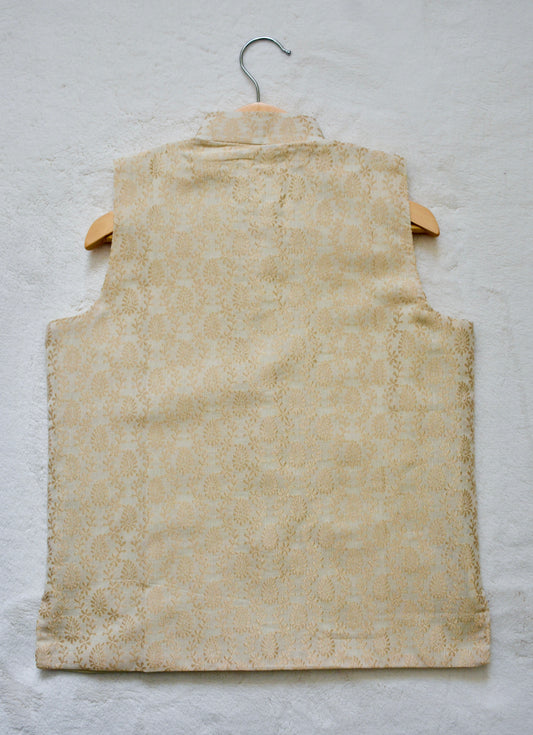 Boys Brocade Nehru Jacket / Waistcoat- Royal Cream & Gold