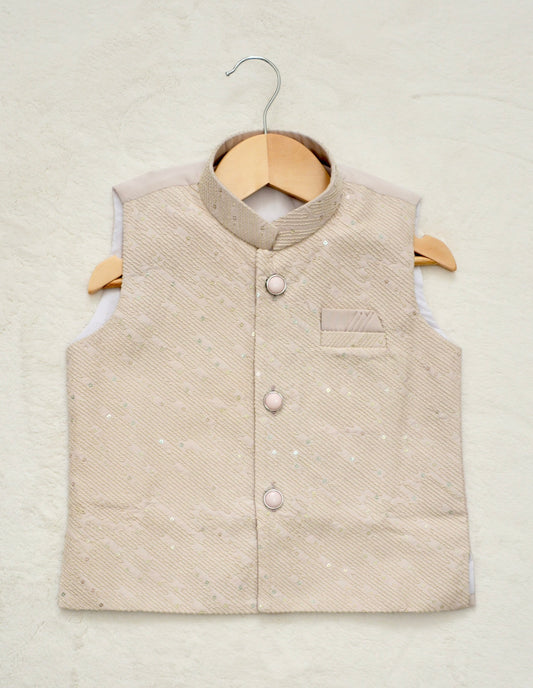 Boys Straight style Cotton Kurta & Pants with Waistcoat Bundi- Pinkish Beige