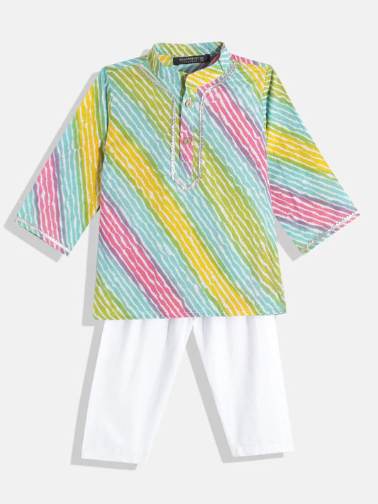 Boys Kurta & Pyjama Printed Cotton Fabric- Leheriya Multi Colour