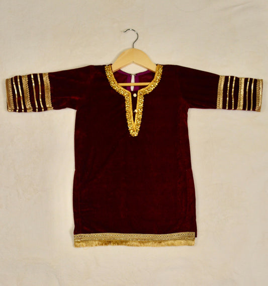 Banarsi Gharara & Velvet Kameez with Dupatta - Mulberry Pink