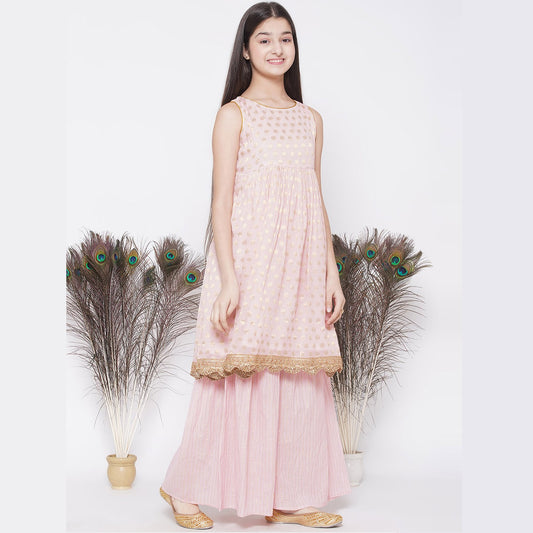 Banarsi Sharara, Kameez with Dupatta - Blushing Pink