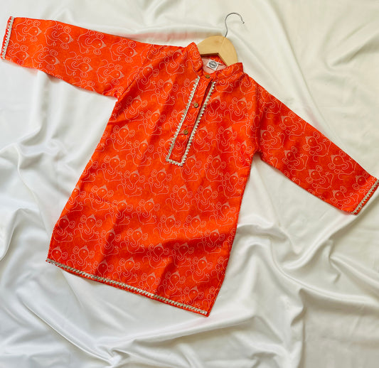 Boys Fancy Saffron Kurta & Pyjama - Ganesh Print