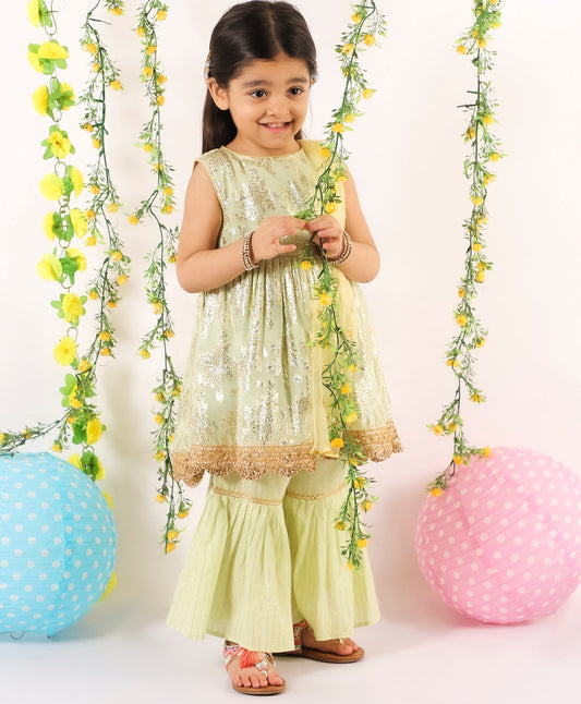 Banarsi Sharara Set with Dupatta - Pastel Green & Gold - Infant