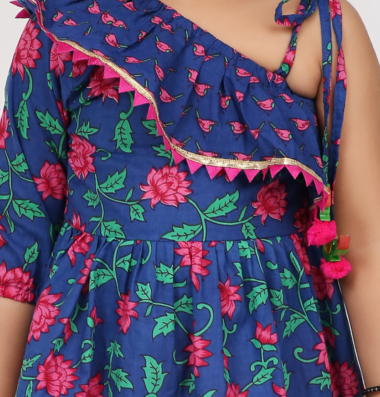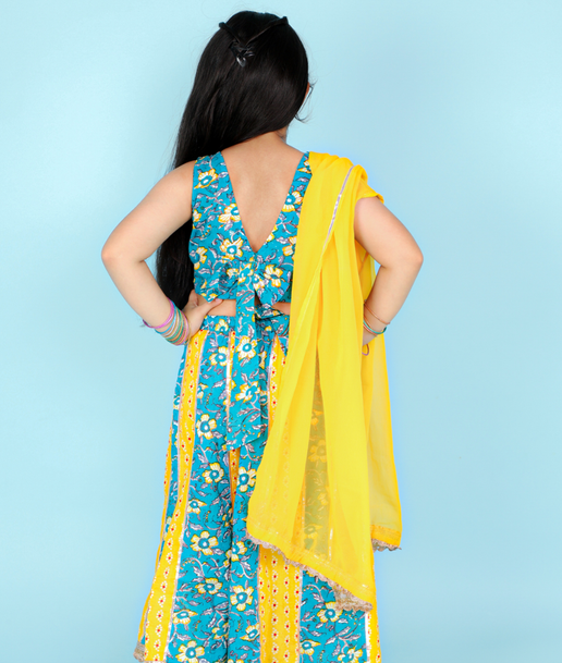 Jaipuri Print Gotta Work Yellow & Blue Lehenga Choli & Dupatta - Infant