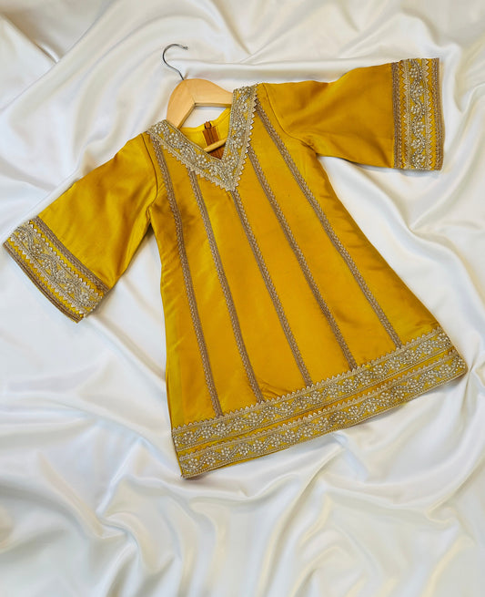 Girls Straight Cut Kameez with Pants & Dupatta - Yellow & Gold - Infant