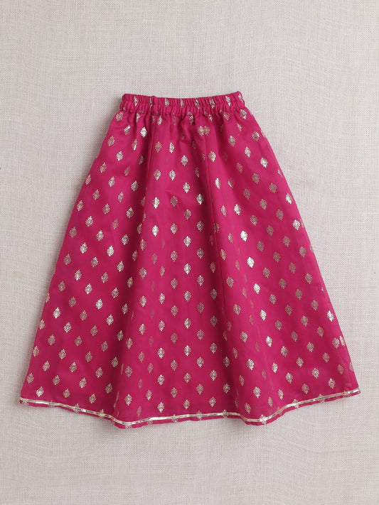 Girls Silk Lehenga Choli With Dupatta- Fuchsia & Gold - Infant