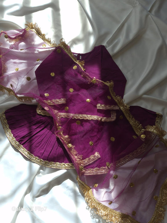 TRENDINGSilk Gharara & Kameez Set with Dupatta - Purple & Gold - Infant