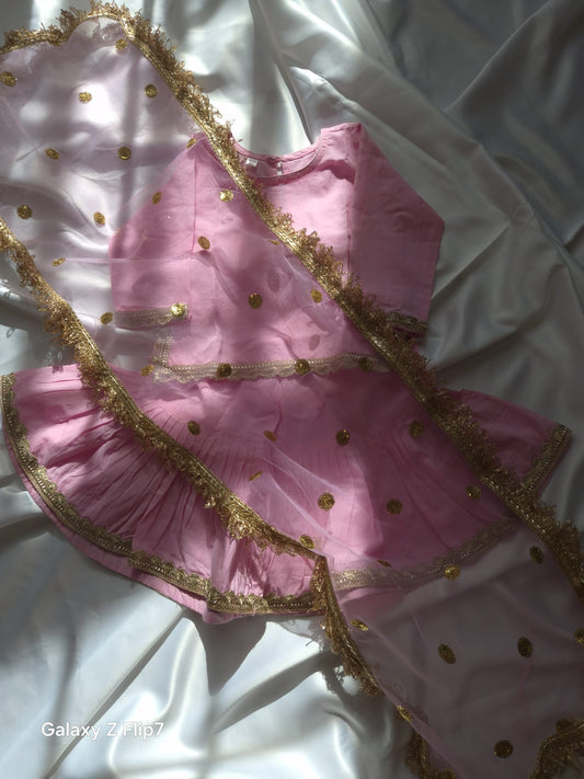 Silk Gharara & Kameez Set with Dupatta - Baby Pink - Infant