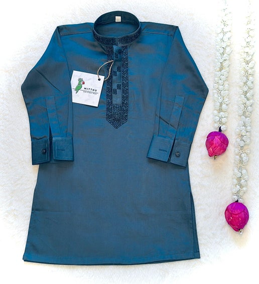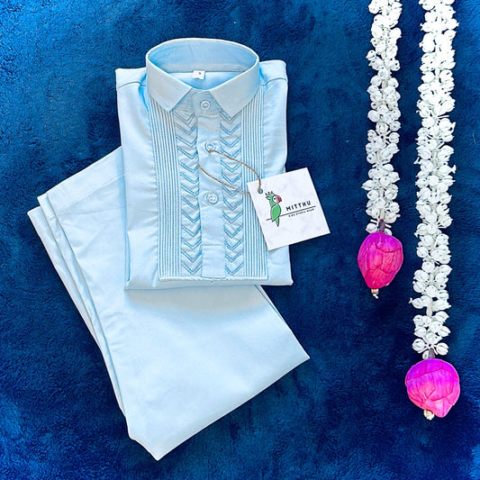 Boys Fancy Kurta & Pyjama - Blue Elephant Print