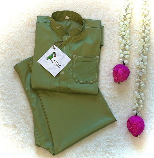 Boys Cotton Kurta & Pyjama with Nehru jacket - Mehndi Green