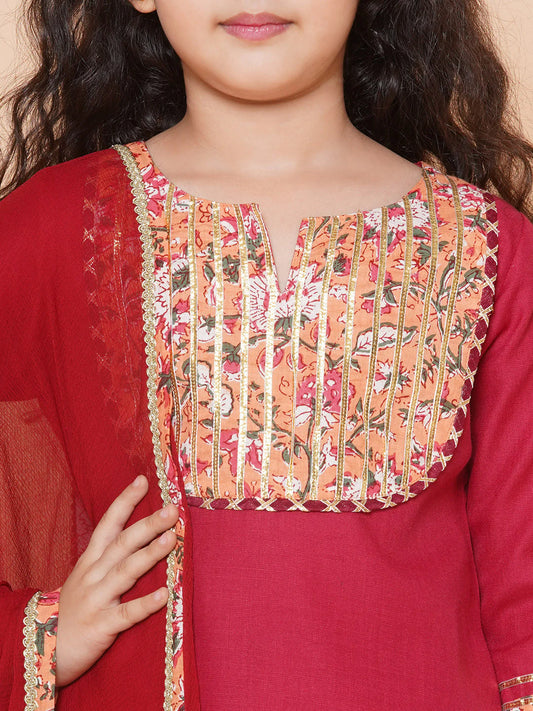 Girls Anarkali with Trousers & Dupatta - Ruby Red