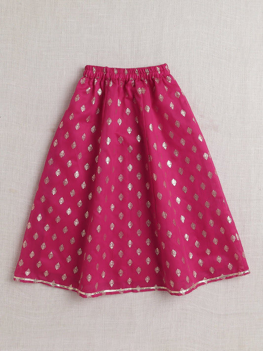 Girls Silk Lehenga Choli With Dupatta- Fuchsia & Gold