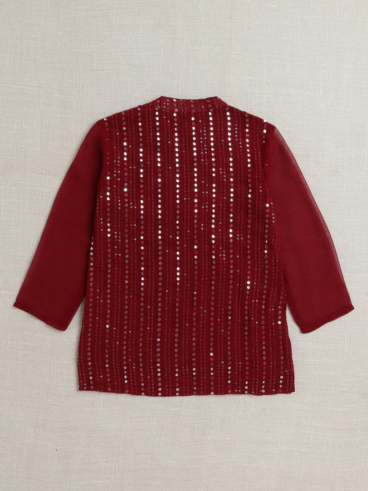 Boys Mirror Work Kurta & Pyjama - Maroon