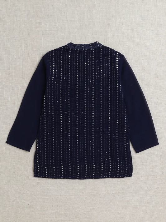 Boys Mirror Work Kurta & Pyjama - Navy Blue