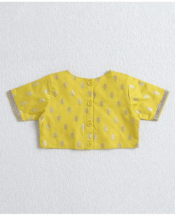 Girls Silk Lehenga Choli With Dupatta- Yellow & Gold
