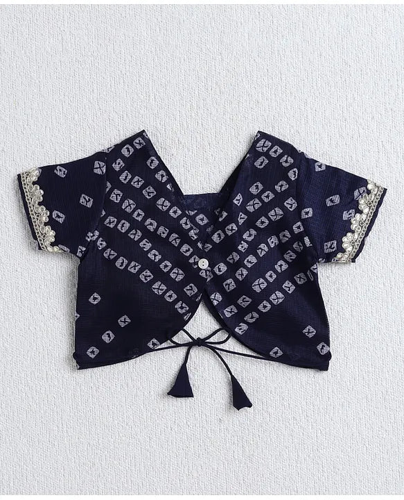 - Navy Blue bandhani print lehenga for girls with gold lace work.